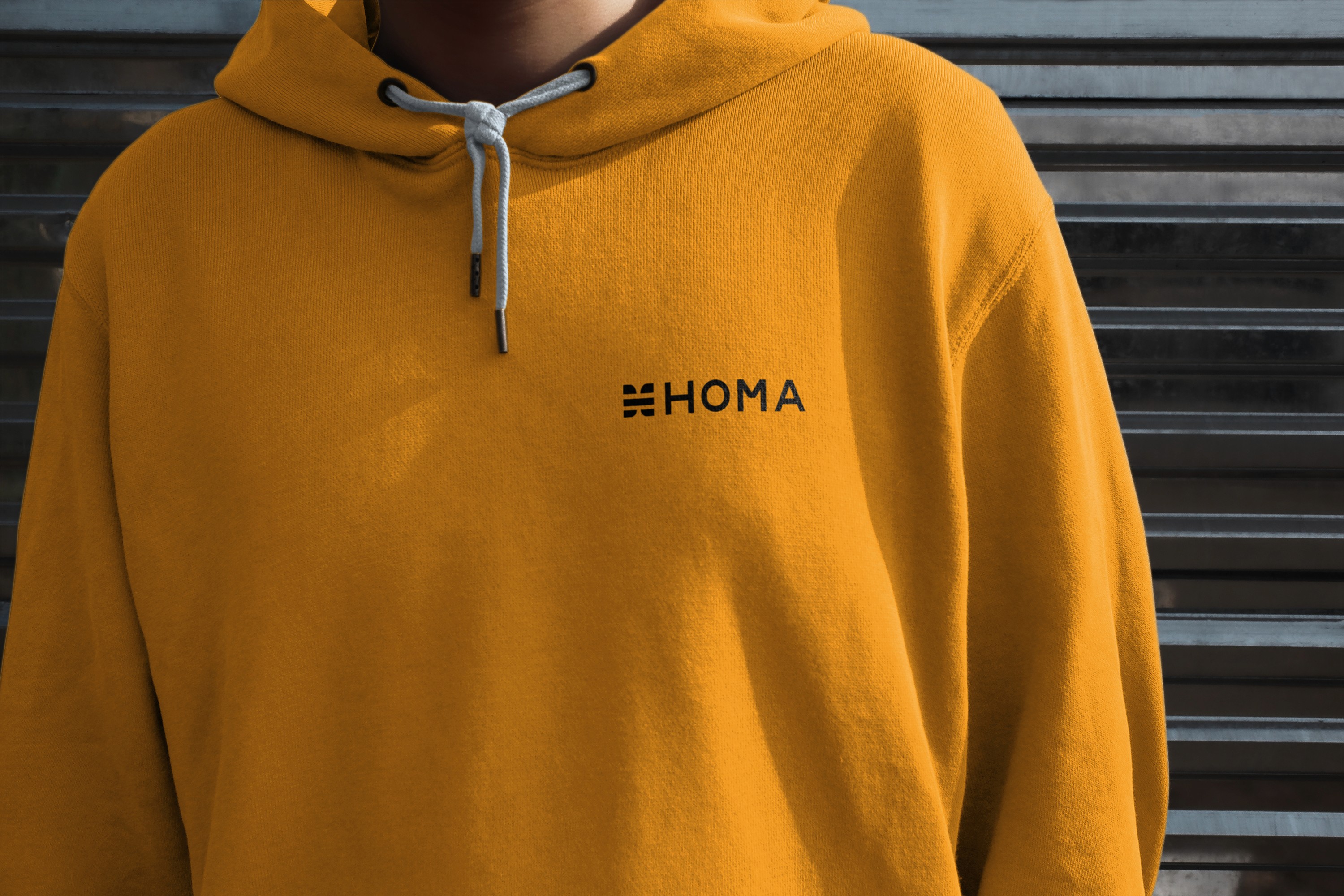 Within this arrangement, the letter H emerges naturally, reinforcing the brand name while maintaining simplicity. The form reflects modularity, adaptability, and clarity, allowing the identity to scale seamlessly across digital and physical applications.