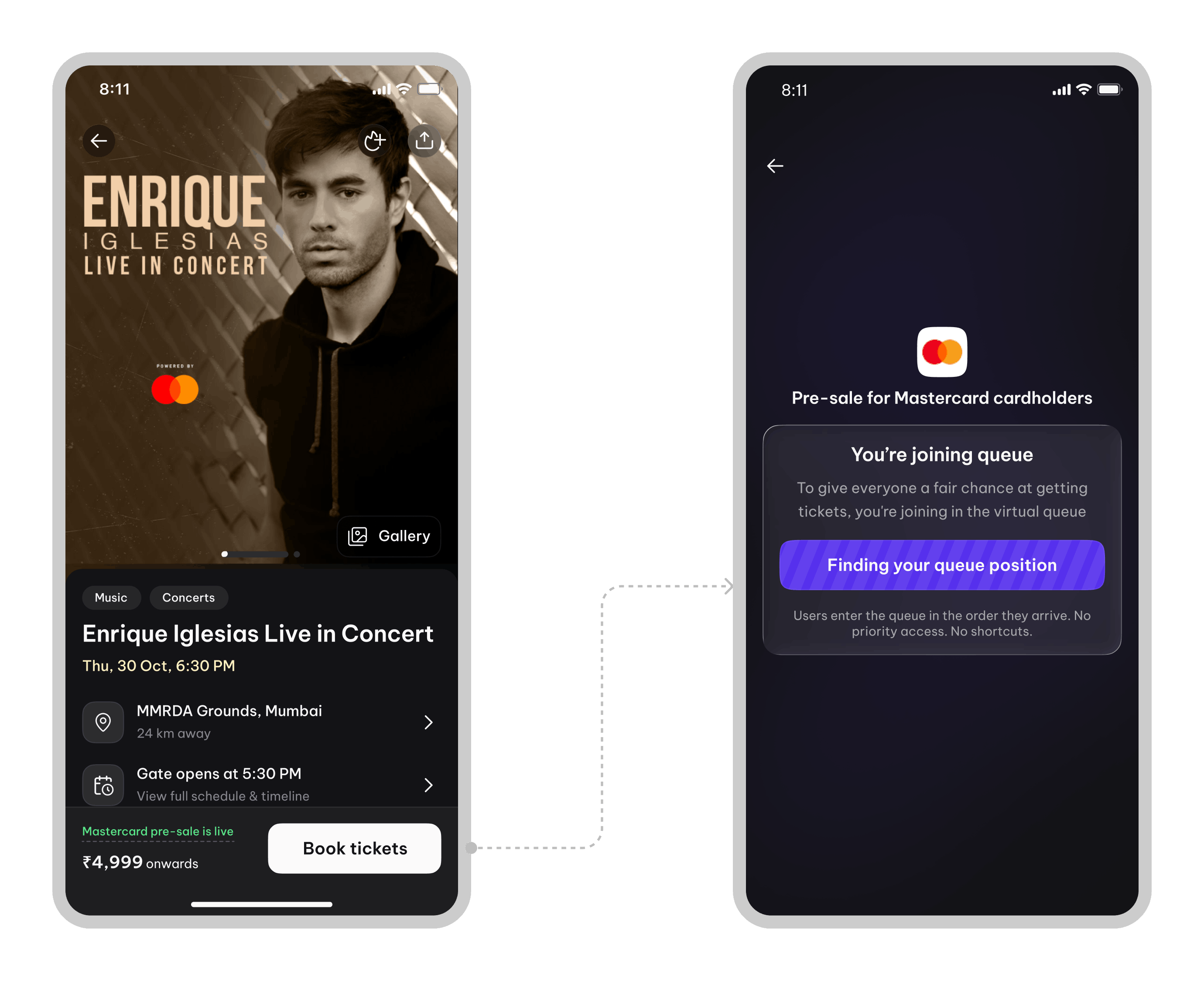 A self-initiated exploration focused on designing a more transparent and anxiety-free virtual queue experience for high-demand events on the District app in India.